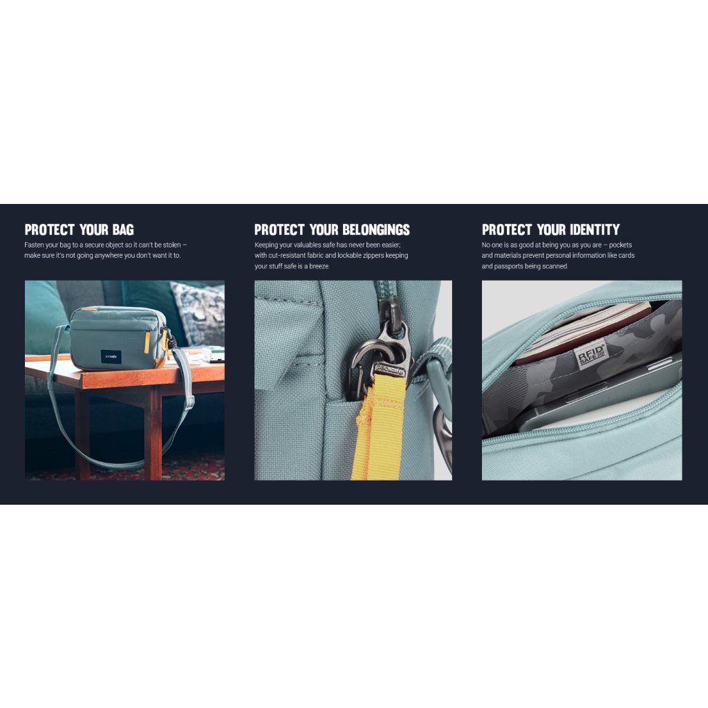 Postupem času rozšiřovali své portfolio bezpečnostního vybavení a v současné době vyrábí bezpečnostní batohy, městské a dámské tašky, tašky na fotoaparáty a další příslušenství, které zahrnuje různé popruhy, zámky a kabely. Všechny jejich výrobky jsou navrženy a konstruovány tak, aby nedošlo k jejich odcizení. Výrobky jsou vybaveny řadou bezpečnostních funkcí, jako např. bezpečnostní přezkou, díky které můžete batoh či tašku připoutat ke stolu, nebo jinému pevnému předmětu. Popruhy jsou vybaveny lanky, které se nadají přeřezat. V našem sortimentu si můžete vybírat z bezpečnostních batohů, které jsou vybaveny i polstrovanou kapsou na notebook. Cestujete-li raději více nalehko, můžete si vybrat z tašek přes rameno, nebo velmi diskrétní jsou ledvinky, které se dají pohodlně schovat pod oblečení a zůstanou tak skryté před očima nenechavců.