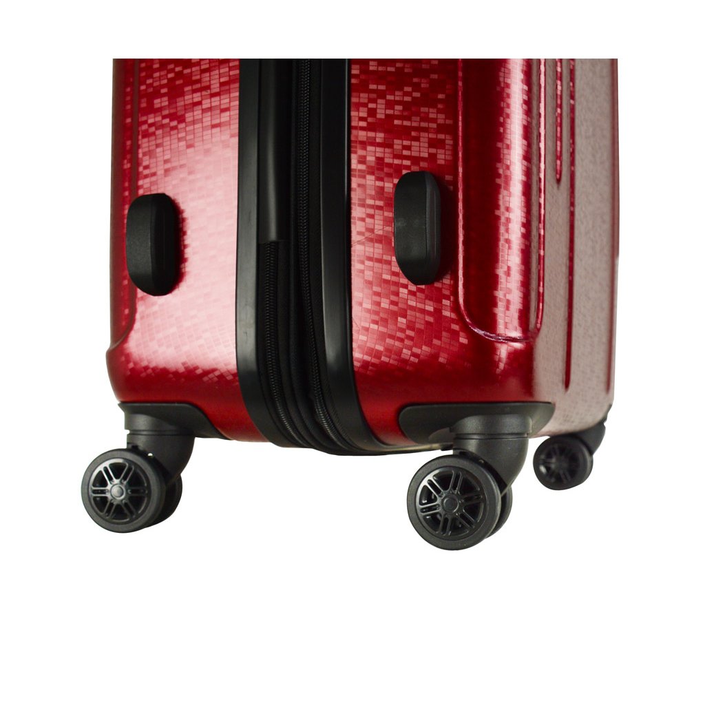 Kufr je vybaven ergonomickou gelovou rukojetí a lehkým výsuvným systémem. Díky expandéru můžete okamžitě zvětšit objem až o 25 %, což poskytuje flexibilitu při balení. Vnitřní prostor nabízí kapsy a jistící popruhy pro organizaci vašich věcí.