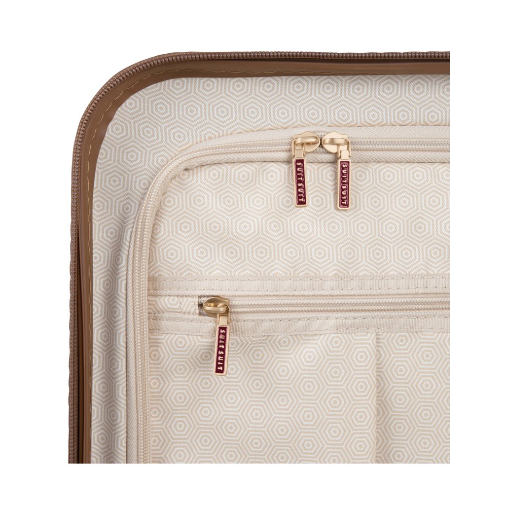 Kufr nabízí luxusní interiér s dostatkem úložného prostoru. Vnitřní podšívka ze směsi bavlny a polyesteru obsahuje kapsy a jistící popruhy pro organizaci vašich věcí.