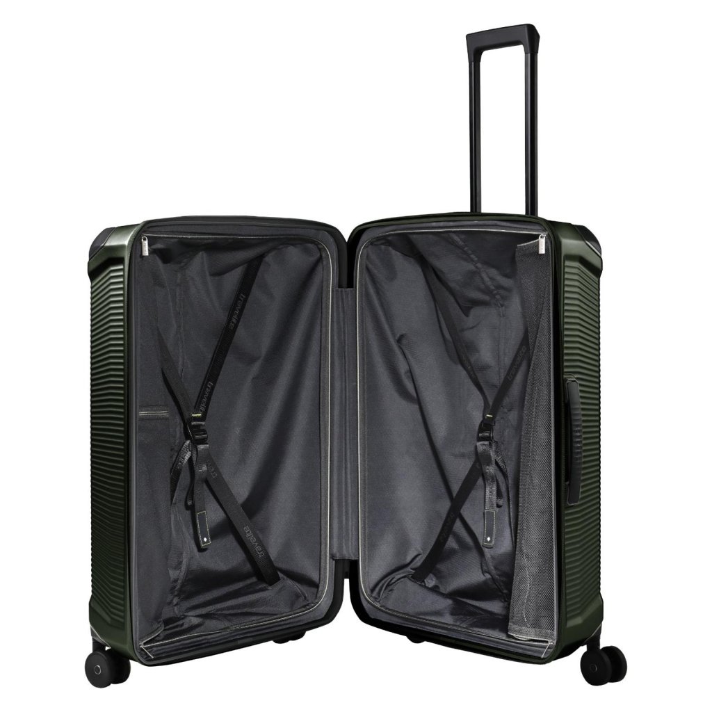 Bezpečné cestování podpoří integrovaný TSA zámek, komfort při manipulaci zajistí výsuvná rukojeť s aretací a ergonomická madla. Dvě dělicí příčky a kompresní popruhy v obou částech kufru zkrátí čas balení a minimalizují pomačkání oděvů.