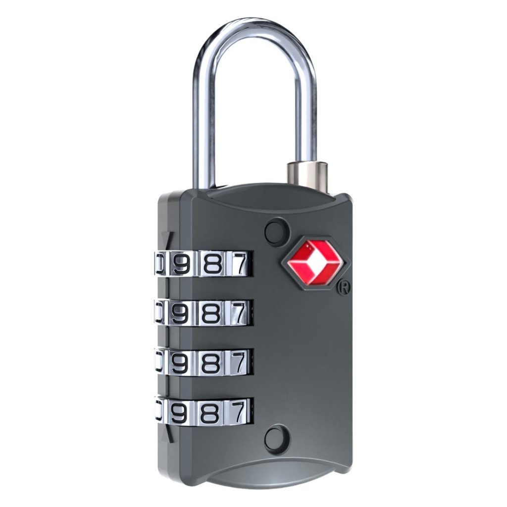 Bezpečnostní visací TSA zámek s čtyřmístným číselným kódem je ideálním doplňkem pro cestovní batohy, tašky i kufry značky CabinZero.